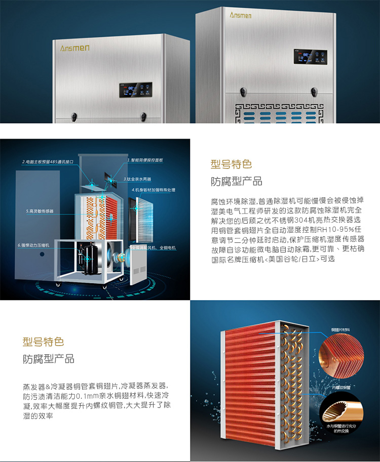 安詩曼是專業防腐除濕機生產廠家,主要產品有工業除濕機,高溫烘干機,轉輪除濕機,低溫除濕機,吊頂除濕機,商用抽濕機,商用除濕機,工業抽濕機,工業干燥機等產品